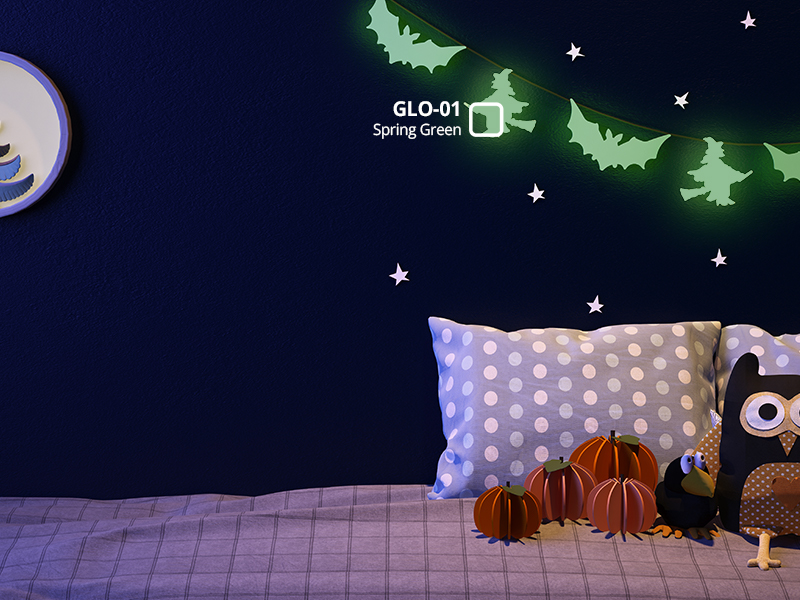 Selain melukis di tembok, Sahabat Avian Brands bisa juga berkreasi menggunakan jenis cat tembok spesial efek yang bisa menyala dalam gelap (glow in the dark). Dekorasi tembok glow in the dark cocok untuk anak yang dalam pembiasaan tidur dengan lampu yang dimatikan. Meski lampu kamar dimatikan, anak akan tetap merasa nyaman karena efek terang yang berasal dari hiasan di tembok.