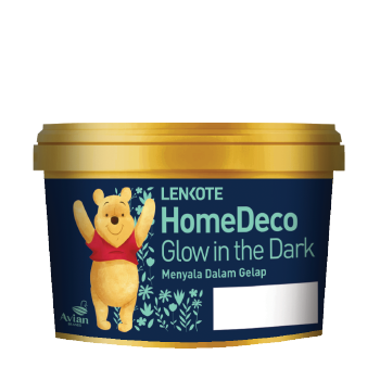 Agar terlihat lebih menarik lagi, Sahabat Avian Brands bisa mengaplikasikan dalam bentuk karakter tersebut menggunakan cat HomeDeco Glow in the Dark dari Avian Brands seri Disney. Produk ini dapat menghasilkan efek glow in the dark sehingga siluet dari karakter yang diaplikasikan dapat menyala saat lampu kamar anak dipadamkan. Berbahan dasar air, cat ini tentu sangat aman diaplikasikan pada ruang anak.