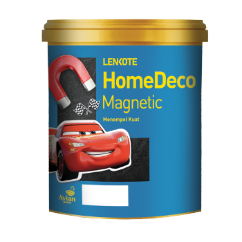 HomeDeco Magnetic dari Avian Brands cat seri Disney adalah cat intermediate berbahan dasar air yang dapat melapisi bidang/ substrate menjadi lapisan yang bisa menarik magnet. Hasil akhir matt yang dihasilkan HomeDeco Magnetic dapat bertahan untuk waktu yang lama pada dinding, bahkan setelah dilapisi cat dinding biasa. Aplikasikan cat HomeDeco Magnetic secara merata sebanyak 3-4 lapis untuk hasil yang optimal.