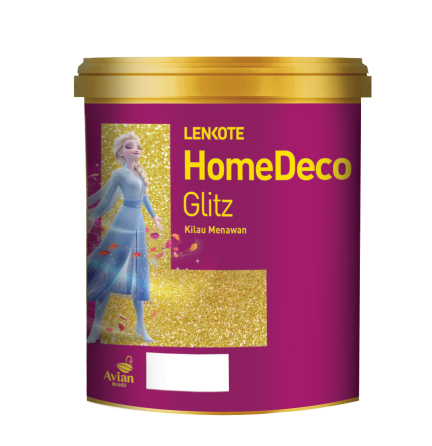 Cat dengan spesial efek ke-2 yaitu HomeDeco Glitz, cat akrilik dekoratif berbahan dasar air dengan nuansa dan tekstur glitter yang berkilau dan menawan.