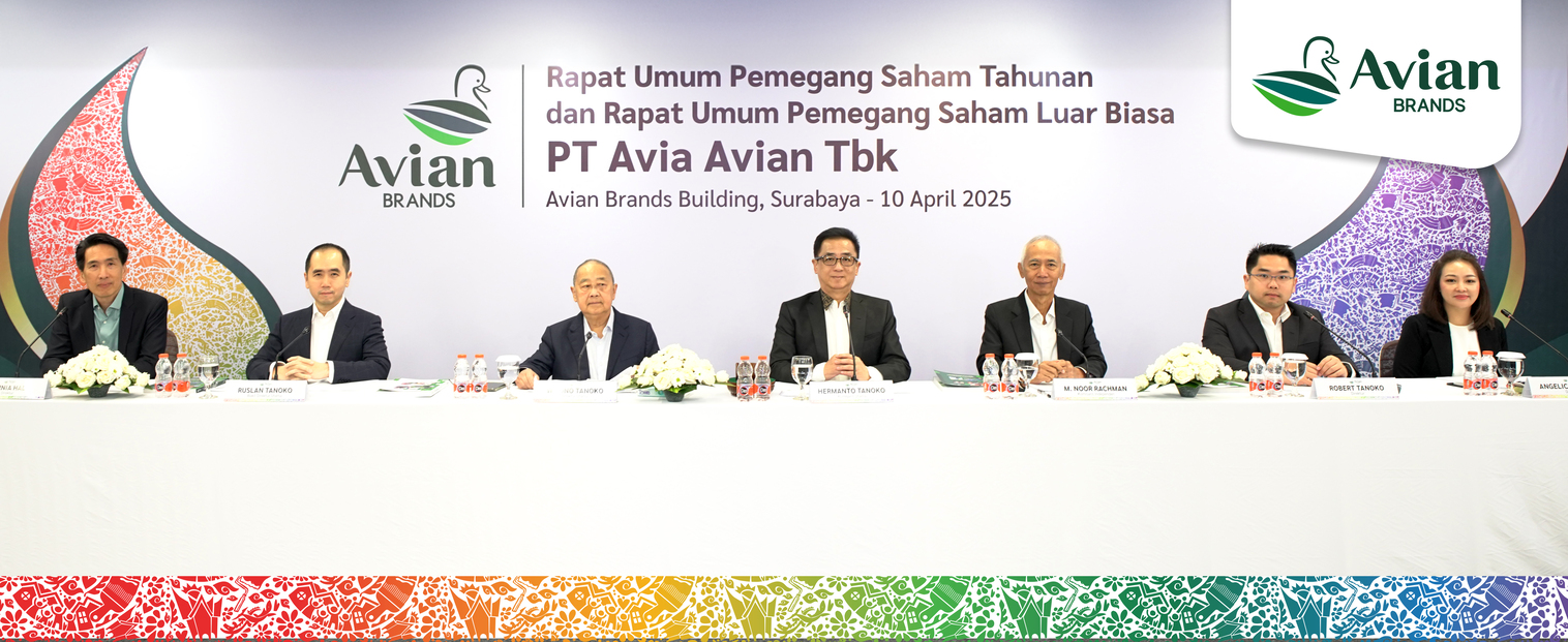 Surabaya, 10 April 2025 – PT Avia Avian Tbk (“AVIA” atau “Avian Brands”), produsen cat dekoratif terkemuka di Indonesia, telah menyelenggarakan Rapat Umum Pemegang Saham Tahunan (RUPST) dan Rapat Umum Pemegang Saham Luar Biasa (RUPSLB) pada hari ini di Surabaya. Rapat tersebut menghasilkan sejumlah keputusan strategis, termasuk pembagian dividen tunai, pelaksanaan program pembelian kembali saham (share buyback), serta pengangkatan anggota dewan komisaris independen.