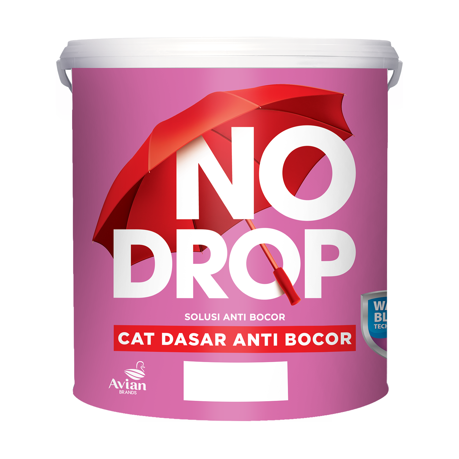 No Drop Cat Dasar Anti Bocor adalah cat dasar yang diformulasikan dengan teknologi Negative Waterproofing untuk mencegah tembok lembap dan menambah daya tutup cat akhir. No Drop Cat Dasar Anti Bocor bersifat kedap air, tahan alkali dan efflorescence, sehingga cocok digunakan untuk eksterior dan interior. Cat dasar untuk tembok baru setelah 3 hari pengeringan/curing, dimana tingkat kelembaban di bawah 30%.