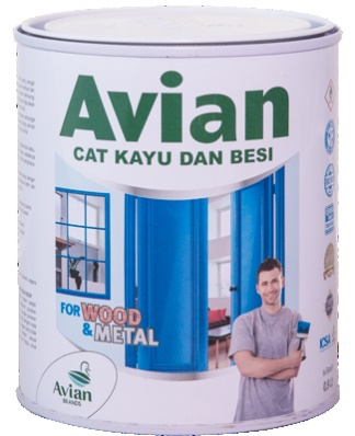 Avian Cat Kayu dan Besi terbuat dari bahan alkyd dengan daya kilap yang tinggi dan daya tutup maksimal. Selain itu, keistimewaan lain dari cat ini ialah tahan terhadap cuaca, karat, jamur, rayap dan cepat kering dengan sempurna dalam waktu 16 - 24 jam.